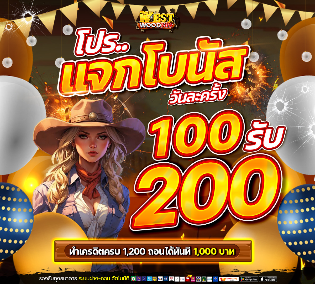 WESTWOOD789🤠 โปรโมชั่นแจกโบนัสวันละครั้ง 100 รับ 200